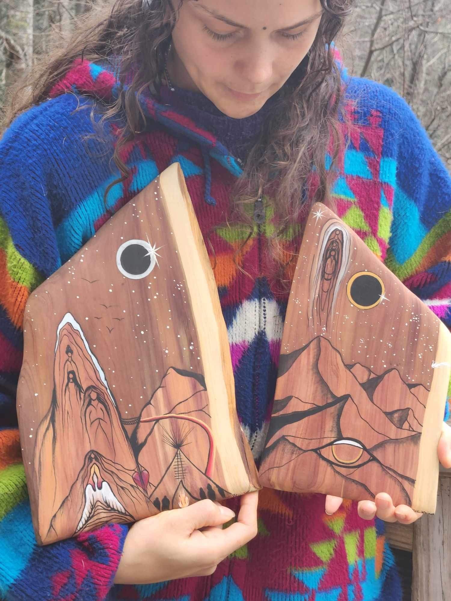 Hand crafted original Art on Red Cedar finished with beeswax by BlUu Visions.
